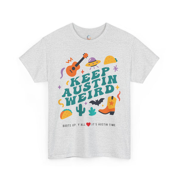 Keep Austin Weird Unisex Heavy Cotton Tee, Austin T-Shirt, Fun Graphic Tee, Quirky Casual Wear, Texas Souvenir, Gift for Friends