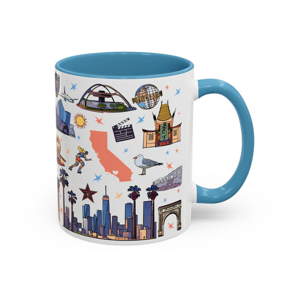 Los Angeles Souvenir Coffee Mug available in 11oz & 15oz sizes, perfect for travelers and coffee lovers. This vibrant mug with eye-catching color contrast is ideal for anyone wanting a touch of LA in their morning routine.