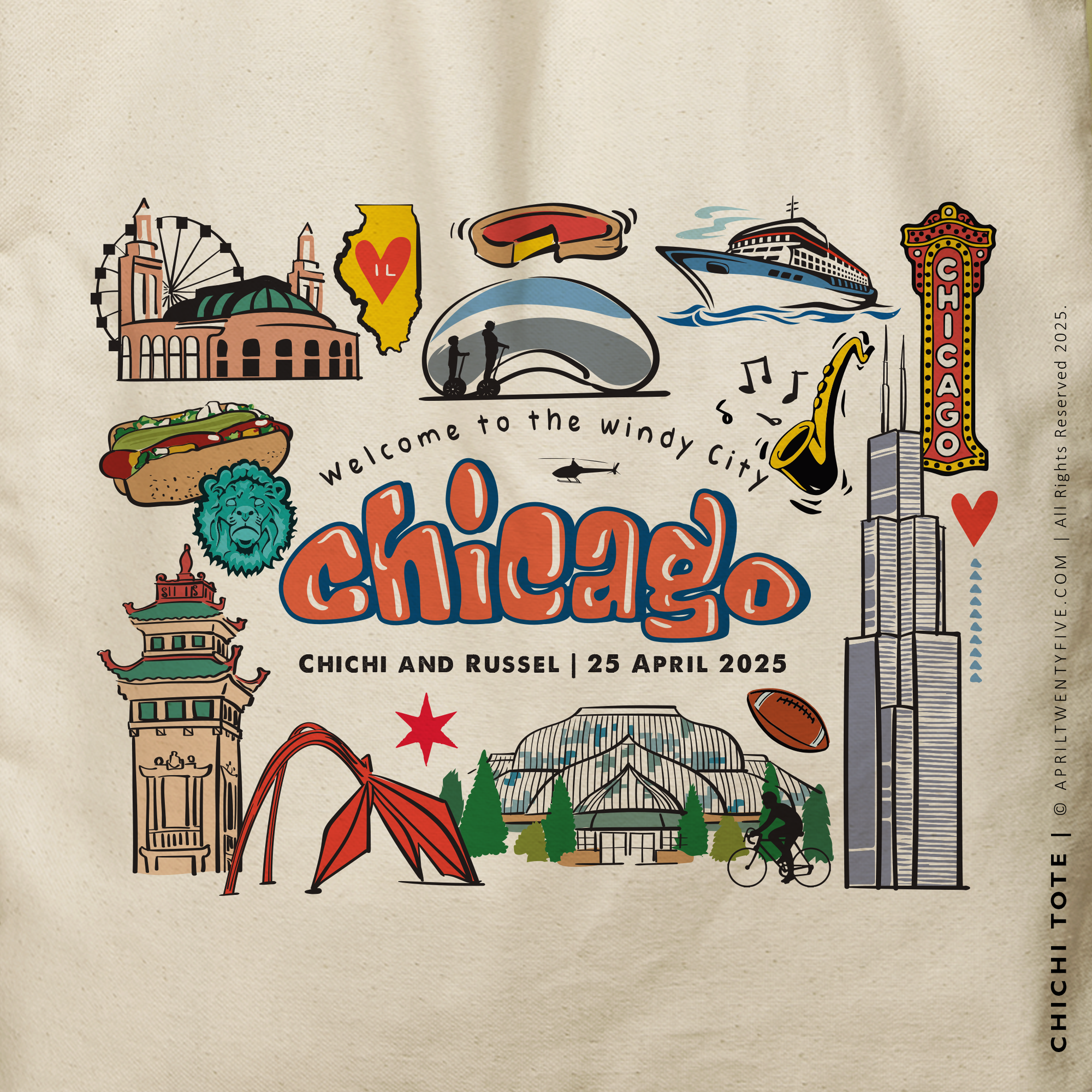 Category: Beach Tote , Bridal Party , Bridesmaid Gift , Canvas Tote , Carryall , Chi Town , Chicago , Corporate Gift , Custom Tote , Doodle , Family Trip , Girls Trip , Grocery Tote , Illinois , personalized-text , Shopping Bag , Souvenir Tote , Tote , Tote Bag , totes , Totes for Girls Trip , Travel Icons , Travel Souvenir , Travel Tote , United States , US , US Wedding , USA , Wedding , Windy City