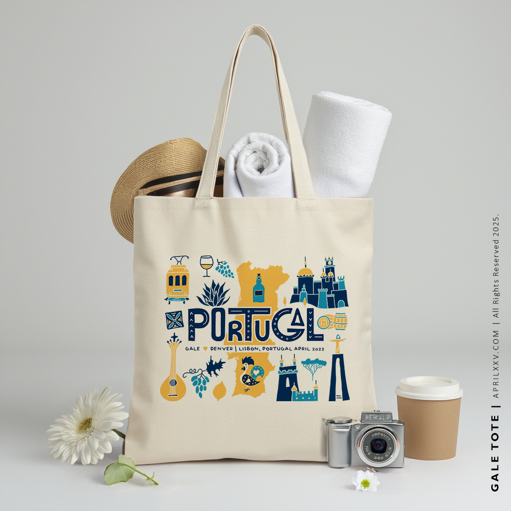 The best way to remember your trip to Portugal? With our very own GALE Canvas Tote. This tote bag features all of the Portuguese travel icons. It's the perfect way to show your love for the beautiful country. Made with 100% cotton, this tote bag is perfect for grocery shopping, errands, or even as a beach bag. Get yours today and start representing Portugal in style!