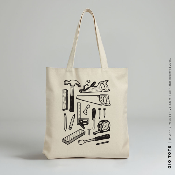 Handcrafted Woodworking Tool Tote Bag – A Stylish & Functional Essential Elevate your everyday carry with this artfully designed woodworking tool tote bag. Featuring detailed black illustrations of essential woodworking tools, this beige tote seamlessly blends practicality with creativity. Whether you're a professional woodworker, a DIY enthusiast, or simply appreciate fine craftsmanship, this durable tote bag makes a perfect statement piece.