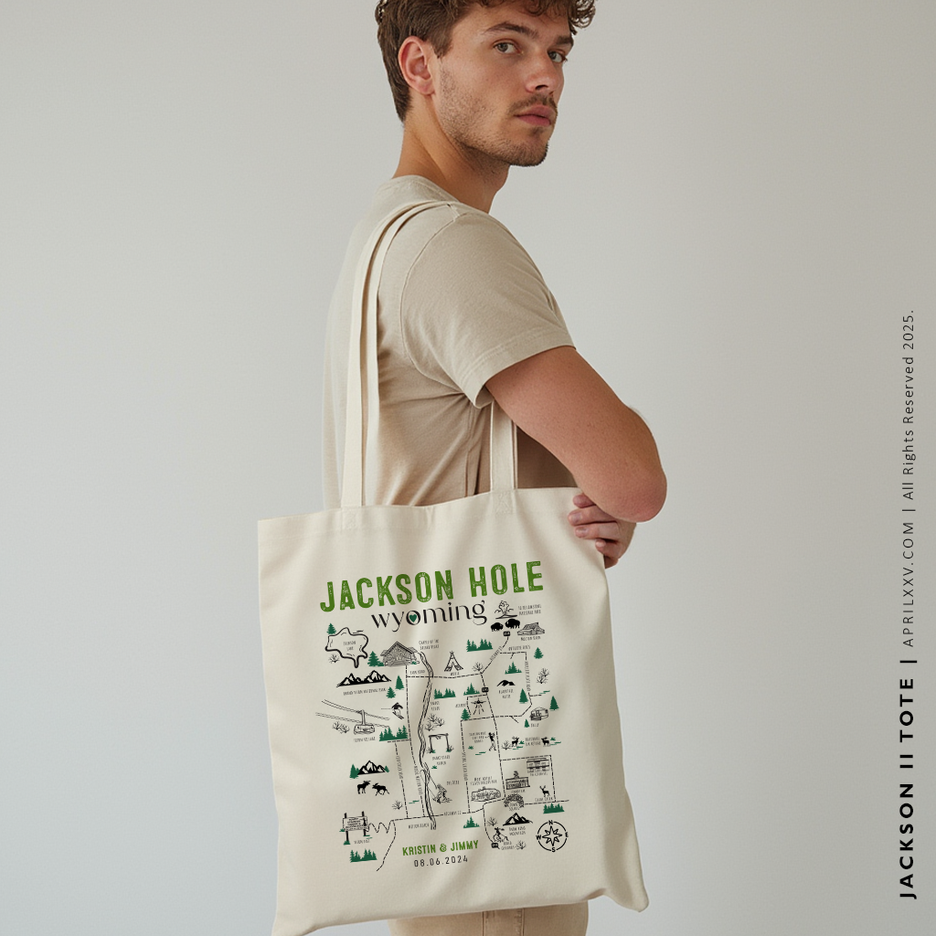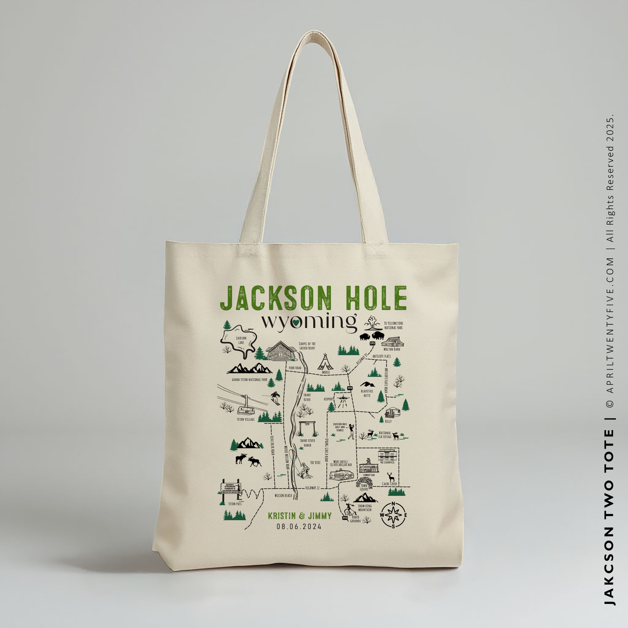 The wild-west-themed canvas tote is the perfect way to show your travel buddies some love. This custom-made canvas bag is heat-transfer-printed. It is the essential gift for your group vacation or for friends and family attending your destination wedding or a weeklong stay in Jacksonhole, Wyoming. The best part? You can personalize it with your own text!