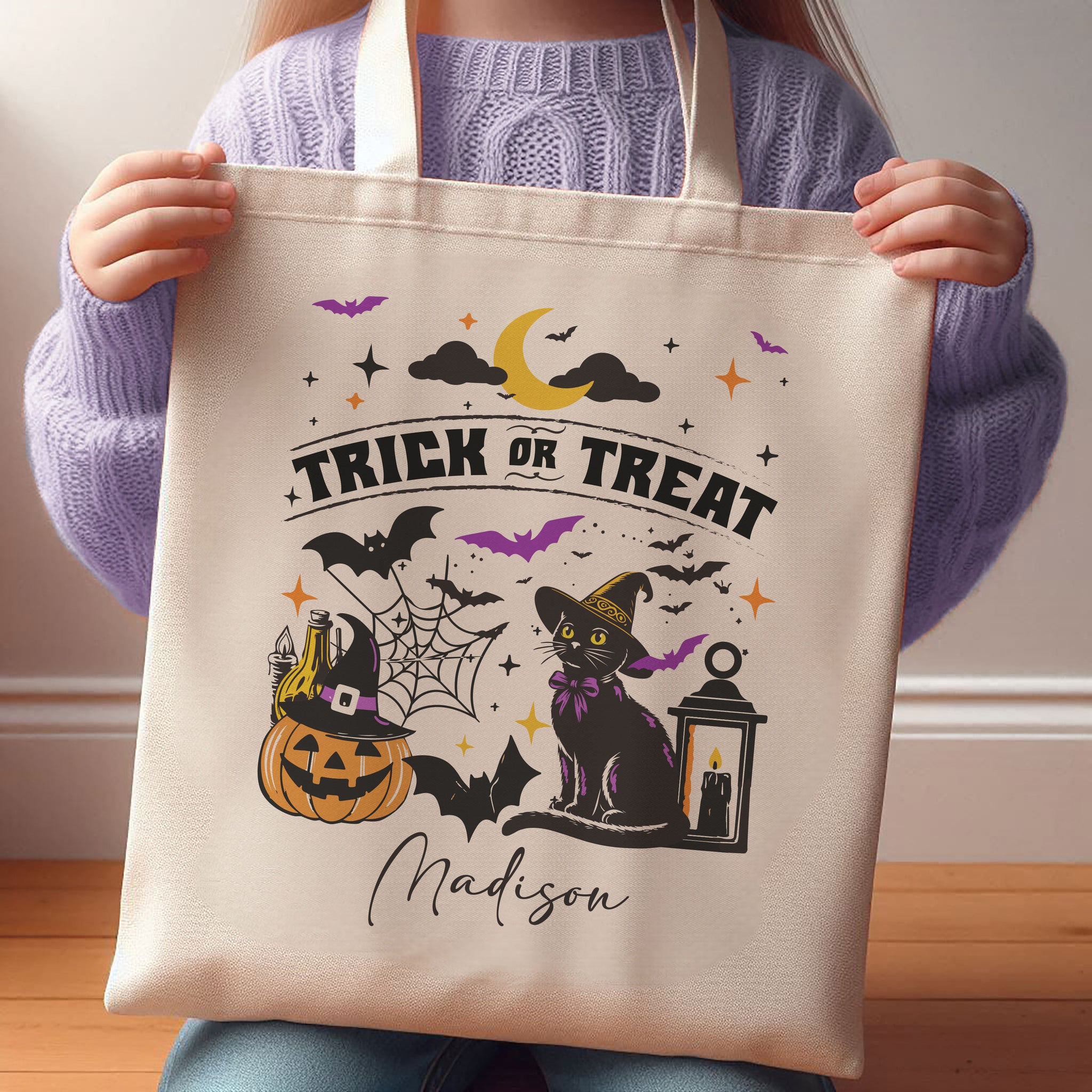 Category: autumn , Bag of Treats , Canvas Tote , Custom , Custom Tote , fall , Halloween , Jack o lantern , Personalized , personalized-text , Tote , totes , Trick or Treat