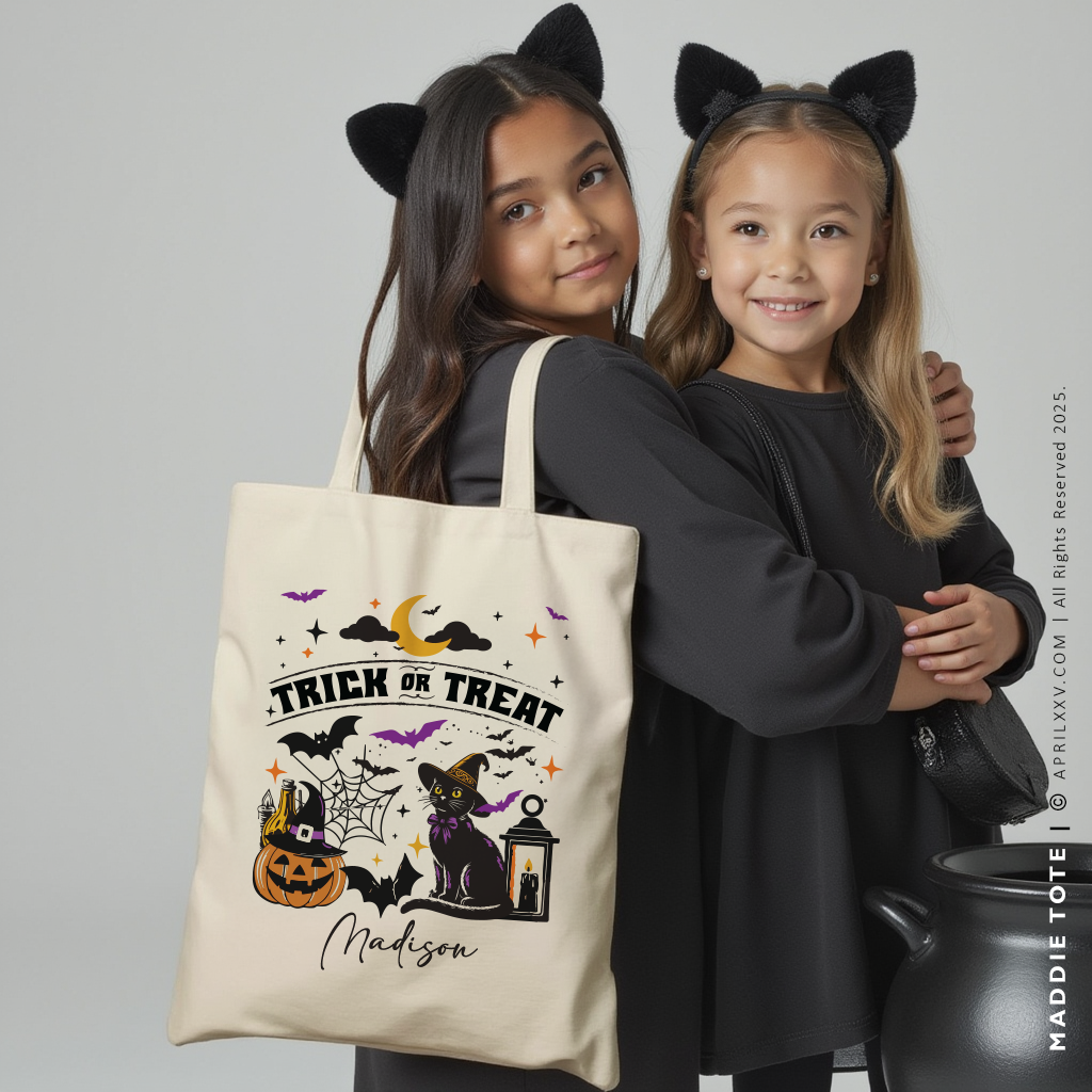 Get your spooky on with our new canvas tote bag. This bag is the perfect way to carry all of your goodies this Halloween. It's also the perfect gift for the ghouls and goblins in your life. With its bright colors and playful design, this tote bag is sure to bring some fun to your Halloween celebrations.