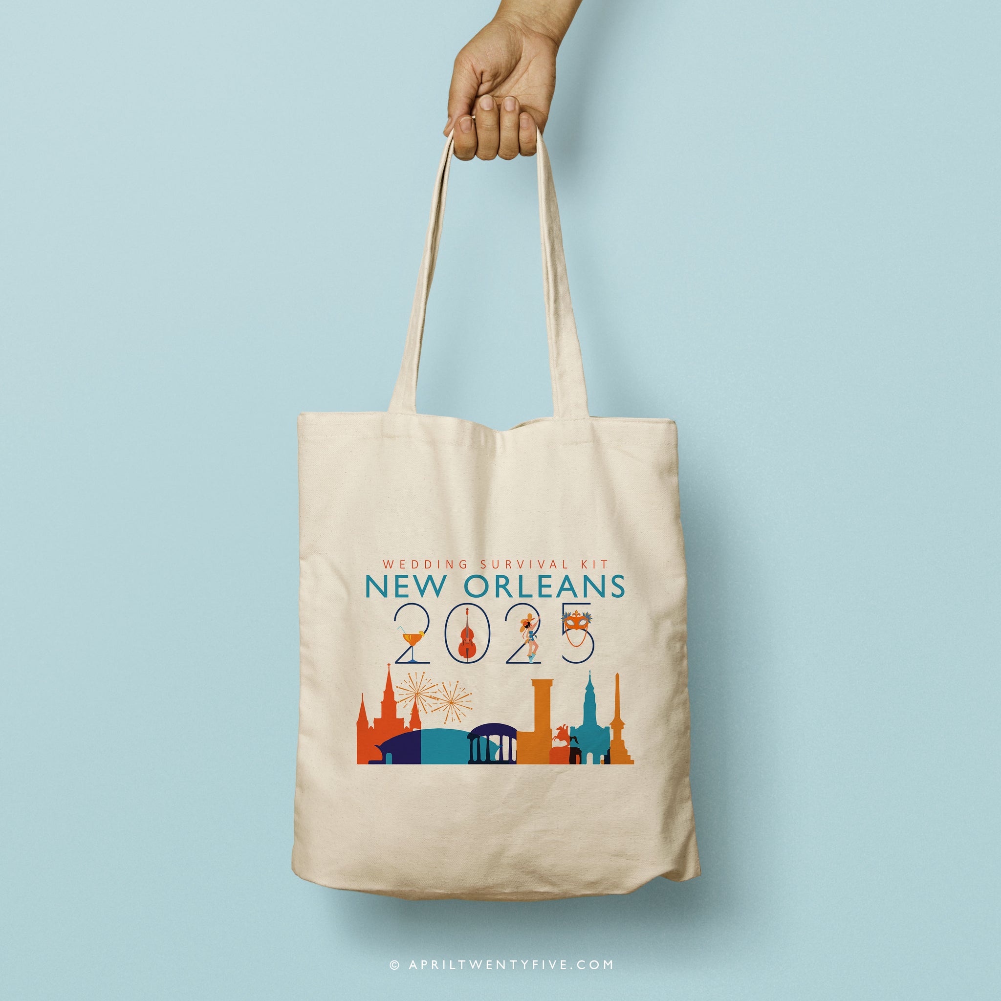 The Natalie Tote is the perfect way to show your travel buddies some love. This custom-made canvas tote bag features New Orleans' most popular attraction, the Mardi Gras! It's the perfect gift and travel souvenir for your group vacations or for friends and family attending your destination wedding or a Girls Trip or maybe even the Essence Festival! The best part? You can personalize it with your own text and colors!