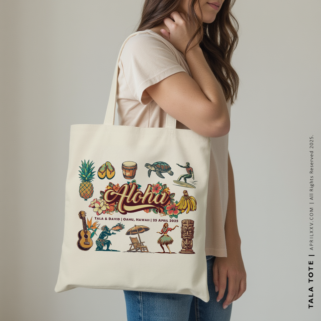 Say hello to the TALA | Hola Hawaiian Canvas Tote, your go-to bag for beach days and hula nights. Made with durable canvas, this tote will carry all your essentials with a touch of Hawaiian charm. Feel the aloha spirit with hola and lei embroidered details. Mahalo!