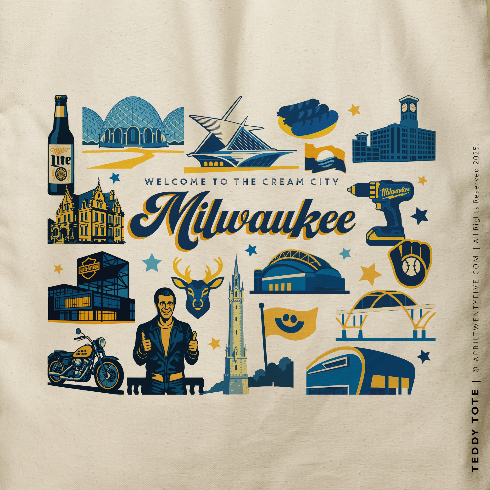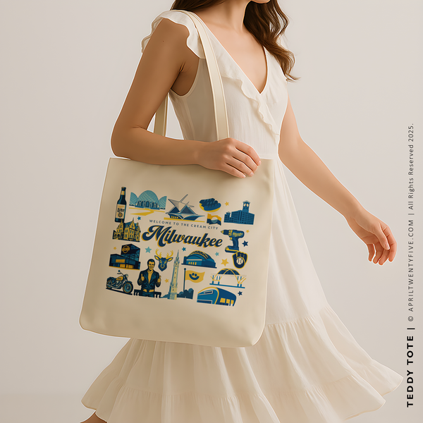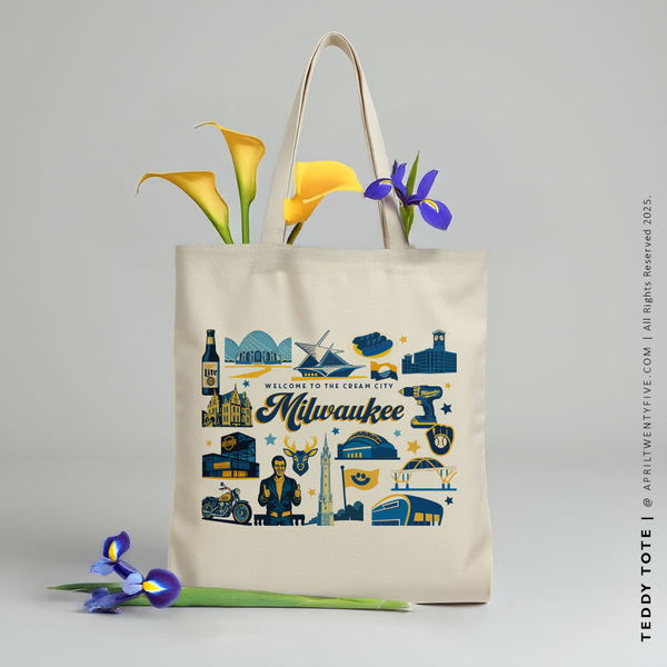 Show off your Milwaukee pride with the Milwaukee Teddy Tote—a must-have accessory for city lovers! Featuring vibrant illustrations of Milwaukee's most iconic landmarks—including the Milwaukee Art Museum, Miller Park, Harley-Davidson Museum, and historic Pabst Brewery—this tote is a stunning tribute to the city's rich heritage.