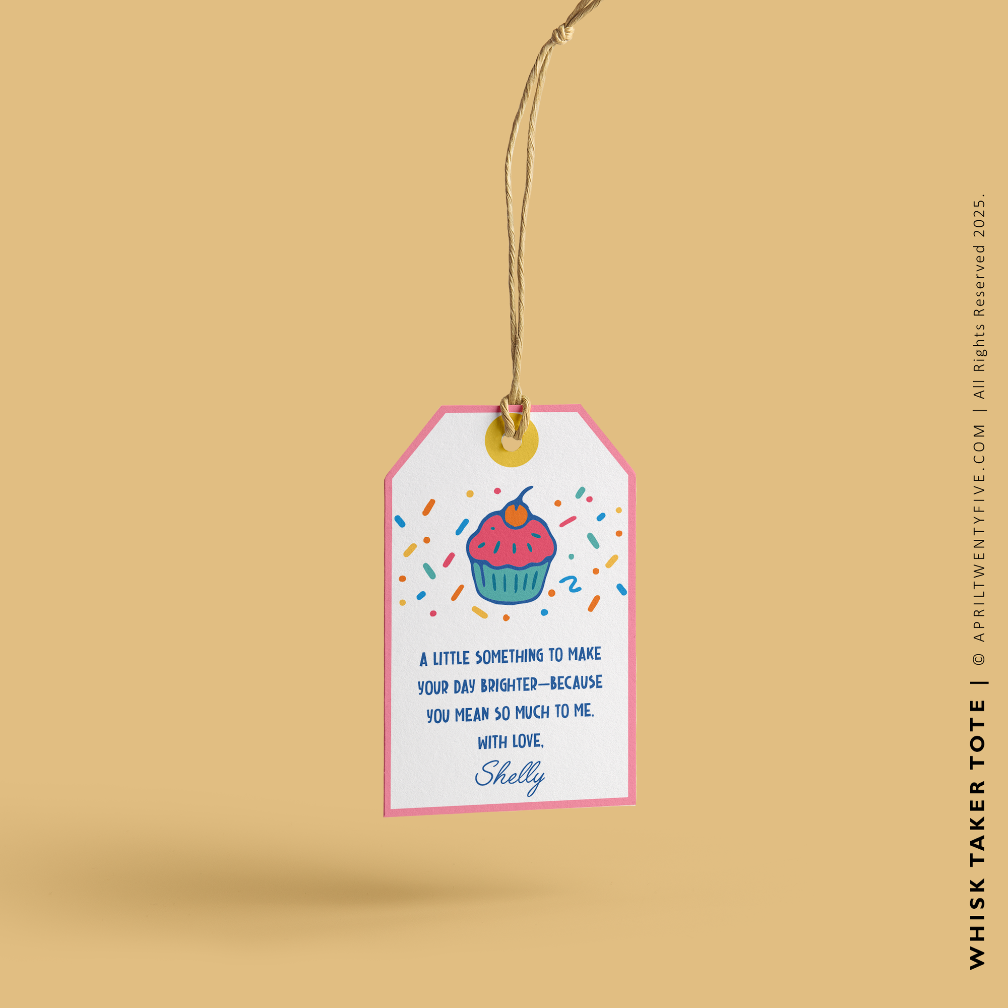 Crafted for long-lasting use, the Whisk Taker Tote makes a thoughtful gift for bakers, foodies, or anyone who loves a sprinkle of charm in their daily life. Plus, its unique design is sure to spark compliments wherever you go. Whether you're running errands or delivering homemade treats, this tote is your go-to companion.