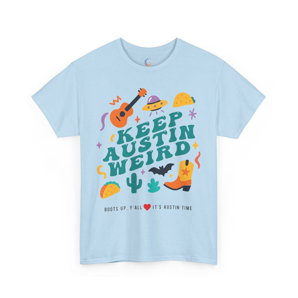 Keep Austin Weird Unisex Heavy Cotton Tee, Fun Graphic T-Shirt for Music Lovers, Austin Culture Shirt, Casual Wear, Gift for Friends