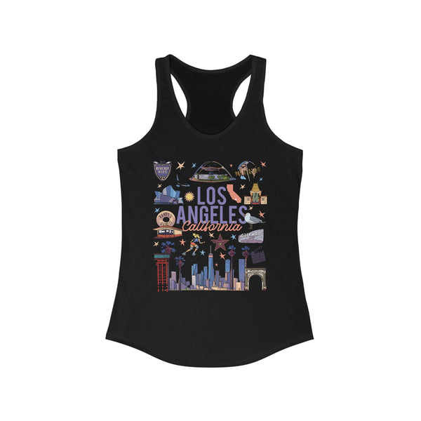 This Los Angeles Women's Racerback Tank features a California graphic design perfect for summer adventures. The tank is made with extra light fabric, making it ideal for an active lifestyle. The classic fit and scooped neckline provide comfort and a sporty touch. Relevant for women who love summer, outdoor activities, and California vibes.