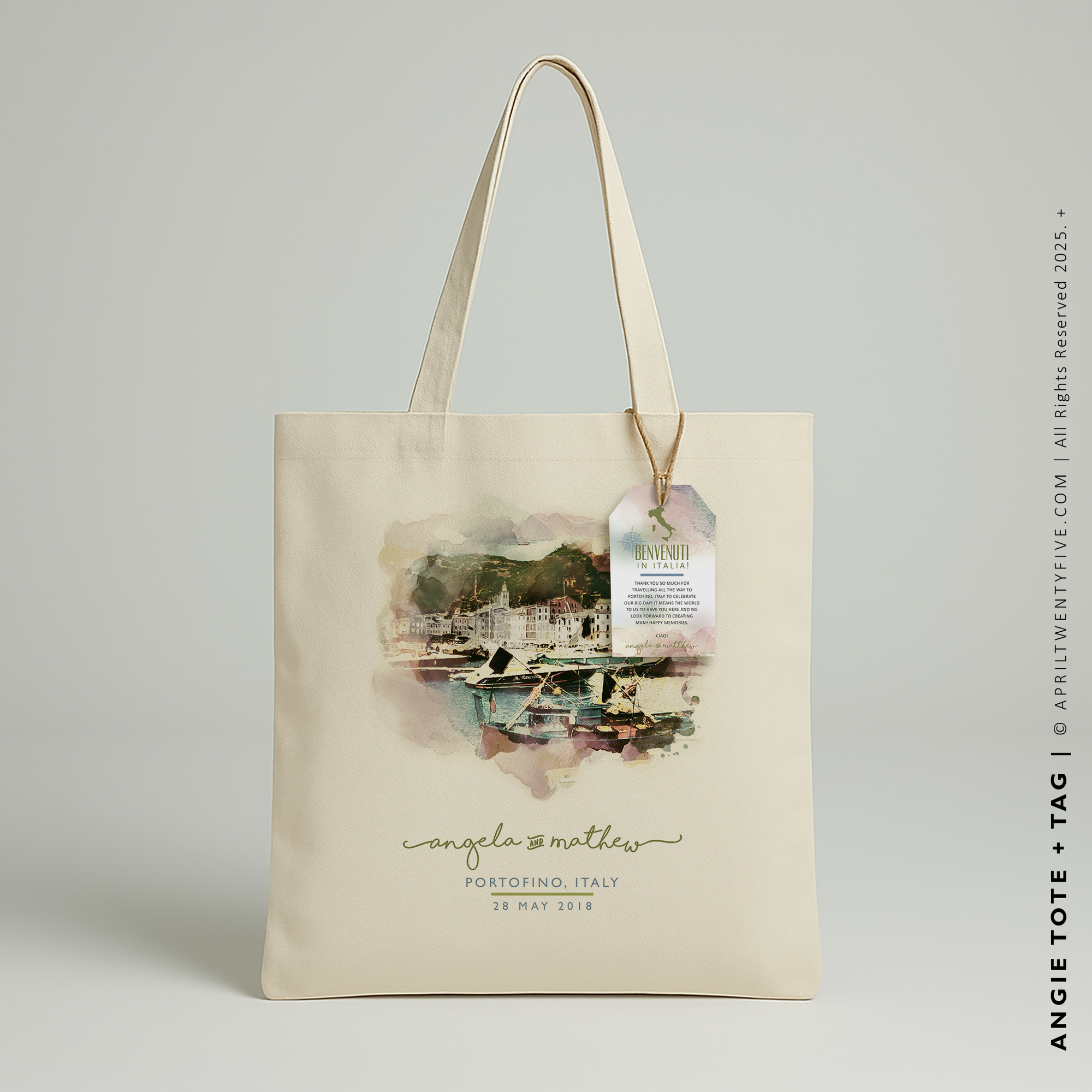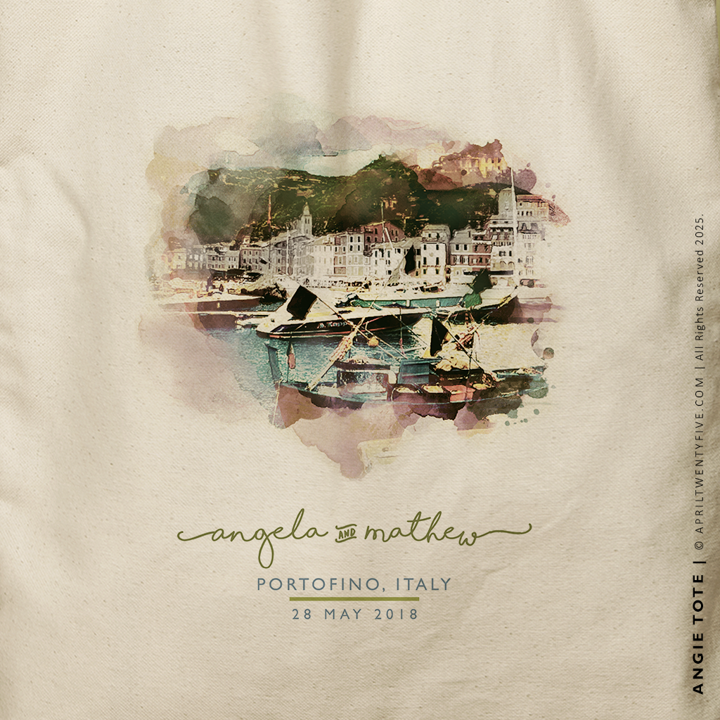 Category: - Weddings , Bachelor , Bachelorette , Birthday , Canvas Tote , Conventions , Corporate , Destination Wedding , Europe , Italy , personalized-text , portofino , Tote Bag , totes , Travel