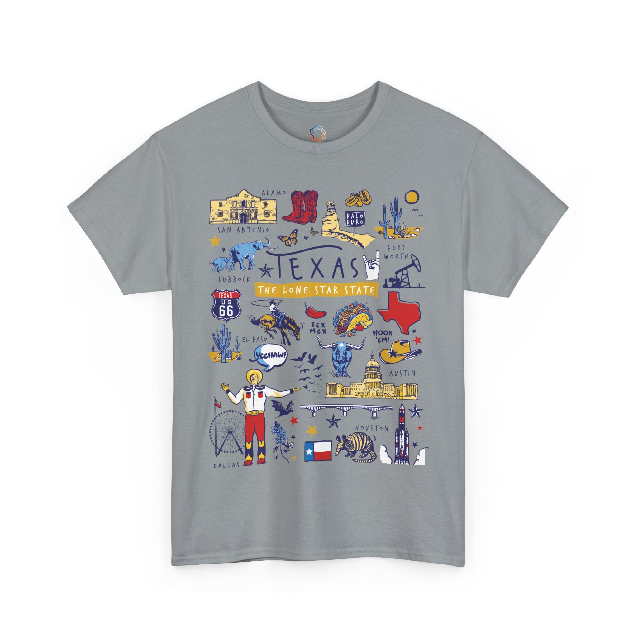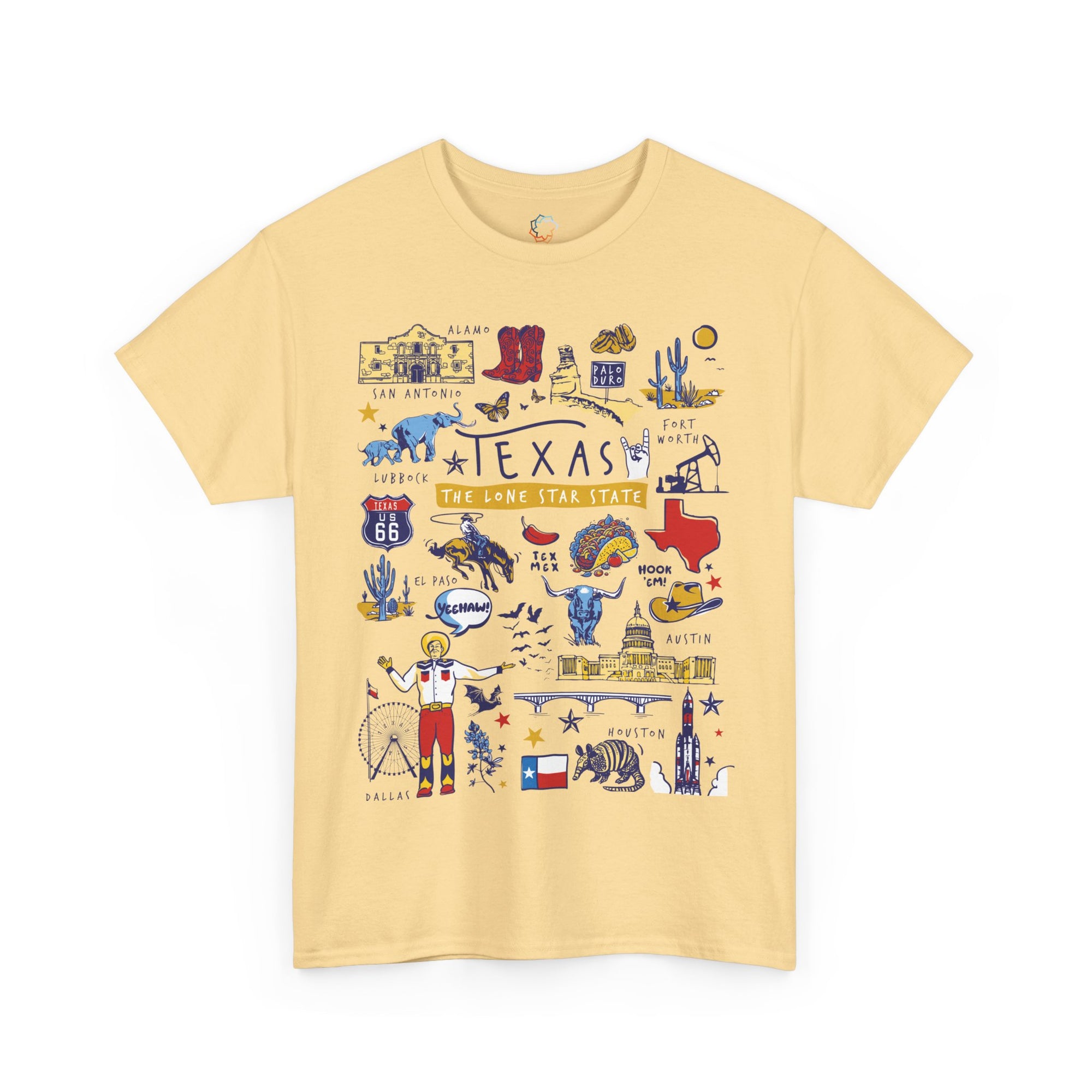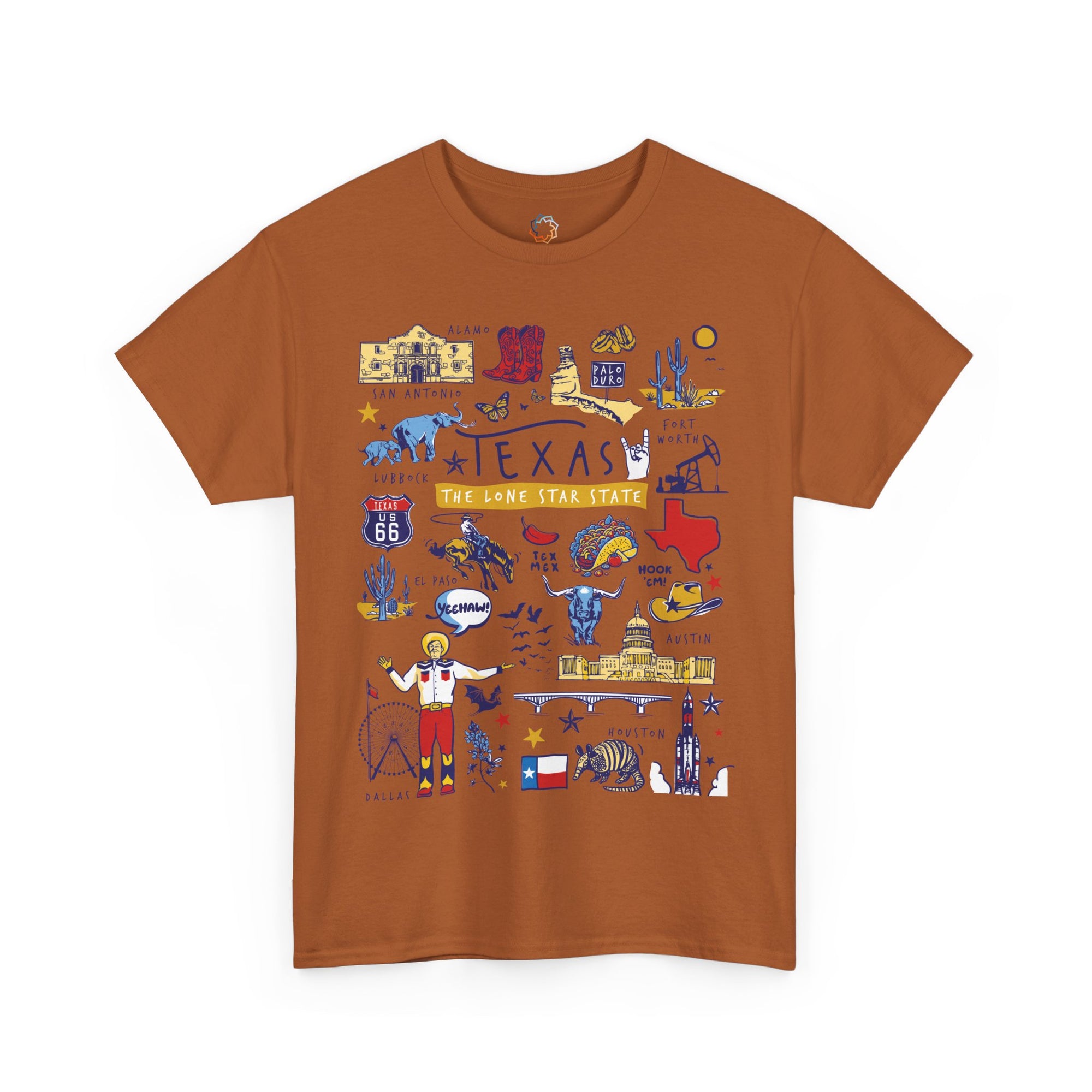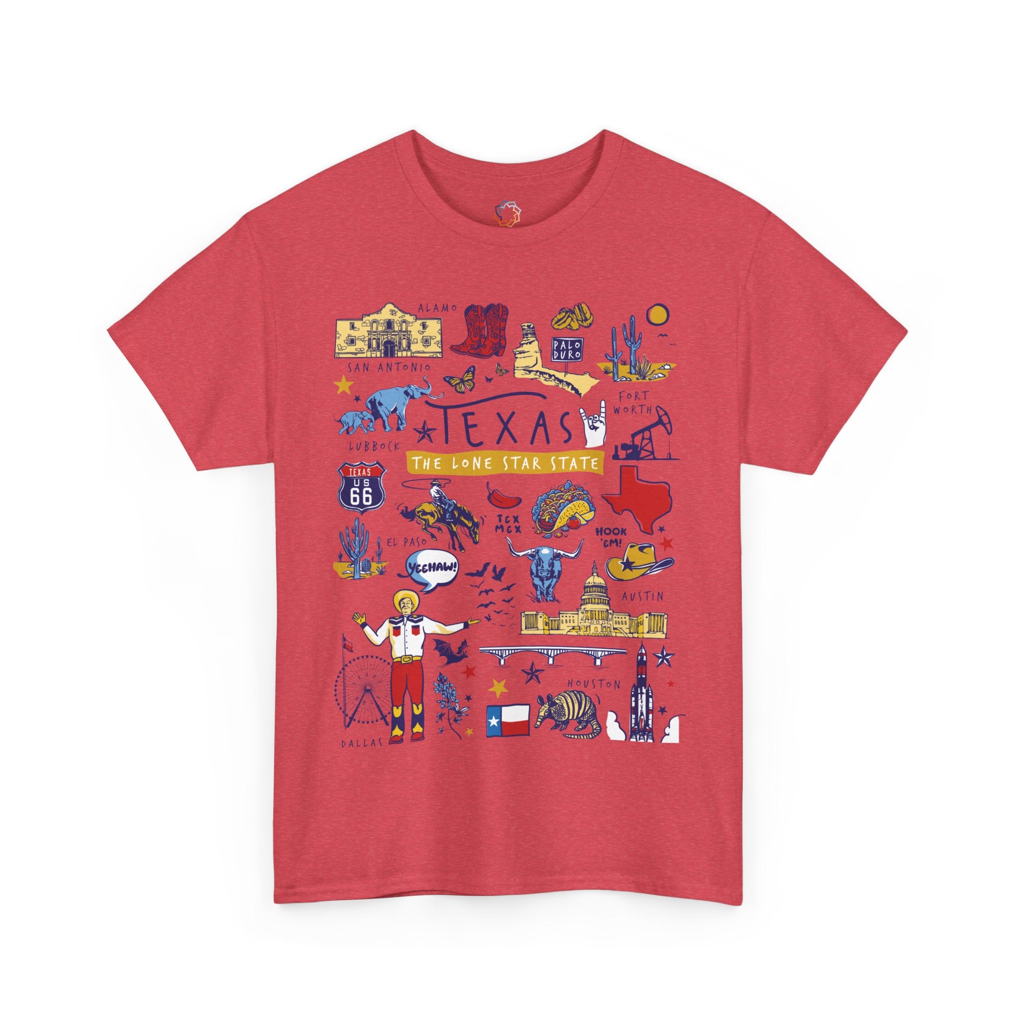 Embrace your unique style with this classic Unisex Heavy Cotton Tee, featuring a fun and vibrant Texas-themed design. This tee is perfect for showing off your Texas pride, making it an excellent addition to your casual wardrobe. Ideal for outdoor gatherings, road trips, or simply lounging at home, this shirt is designed to bring joy and comfort to your everyday life. It's a fantastic gift for friends or family members who cherish the Lone Star State, especially during holidays like Independence Day, state fairs, or casual summer gatherings. This tee brings a relaxed, friendly vibe—it's more than just clothing; it’s a conversation starter!